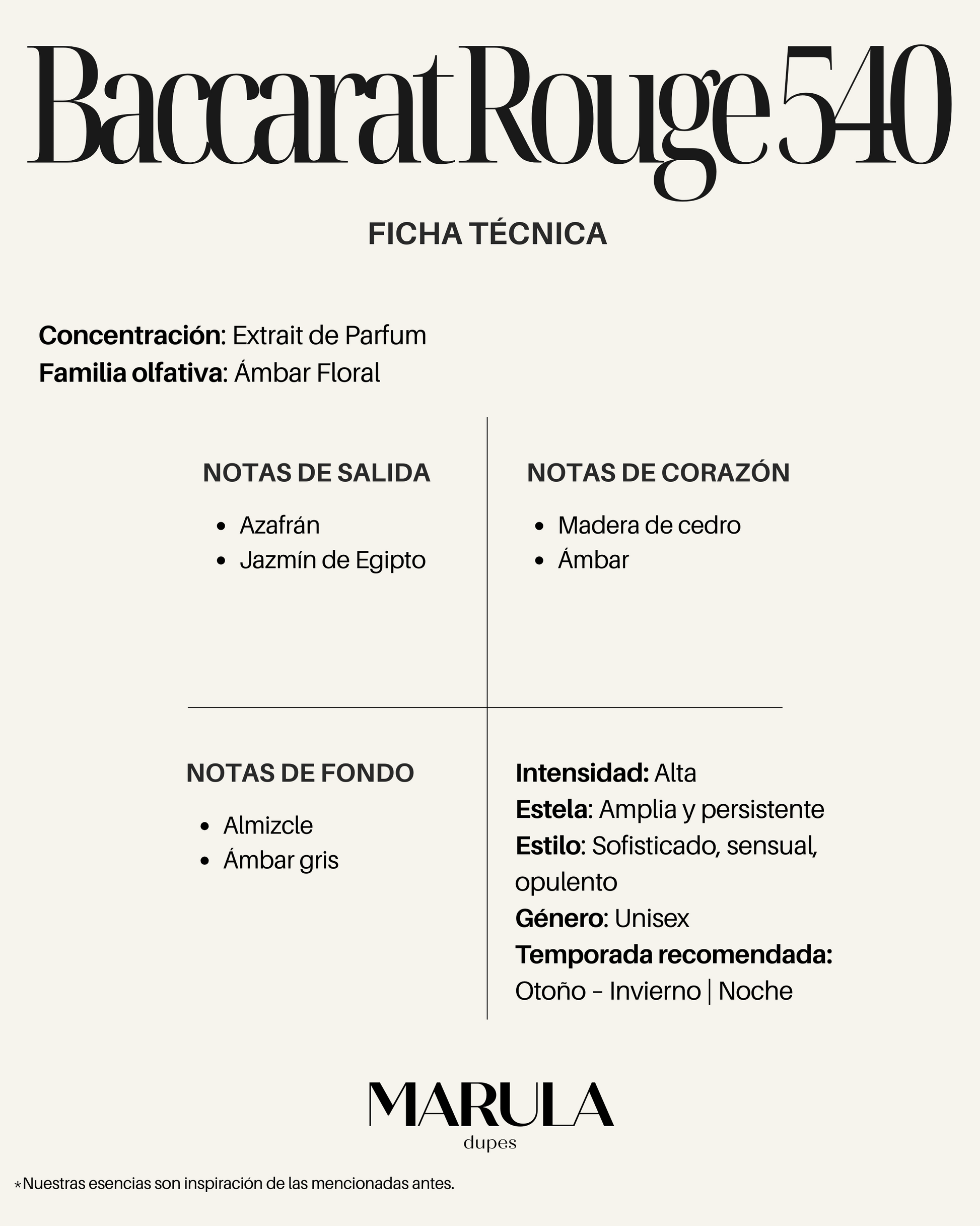 Una fragancia intensa y luminosa que eleva la opulencia a su máxima expresión. Desde la primera nota, el azafrán y el jazmín despliegan un aura especiada y floral, dando paso a un corazón de maderas cálidas y ámbar que envuelve con profundidad. La base, con almizcle y ámbar gris, aporta una estela mineral y aterciopelada que permanece en la piel como un sello distintivo. Un perfume audaz, sensual y sofisticado, ideal para quienes buscan dejar huella.